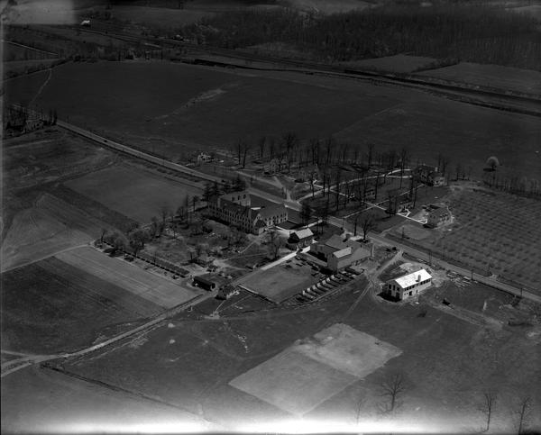 Aerial views of the Church Farm School in Exton, Chester County, Pennsylvania. Depicts original school and residential buildings,