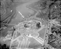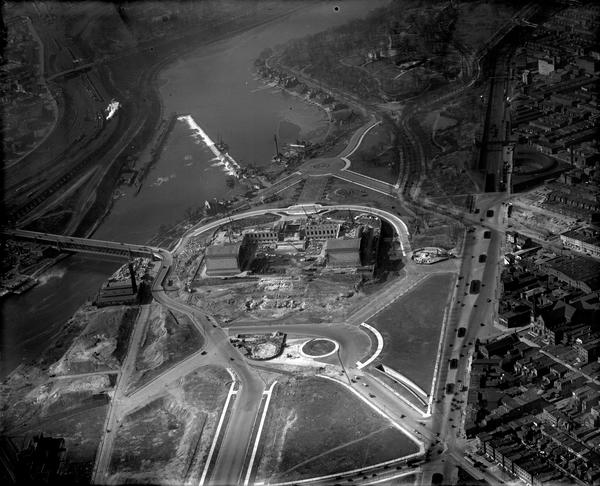 Aerial views showing the Philadelphia Museum of Art under construction. Designed by Horace Trumbauer and the firm of Zantzinger,