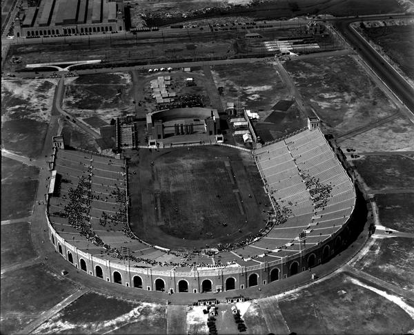 Aerial views of Municipal Stadium, later known as John F. Kennedy Stadium, in 1926 as it is being prepared for the Sesqui-Centennial