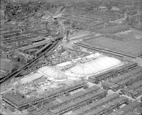 Aerial views of the Ringling Brothers Barnum and Bailey Circus in the neighborhood of North Philadelphia. Depicts vicinity