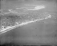 Aerial views of the coastline in Atlantic City, New Jersey. Distant views show the shoreline in sections from the vicinity