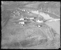 Aerial views of Indian Head Park Beach on Perkiomen Creek. The location was the site of W.M. Keyser's Mill, which was sold to the park in 1918. Views show several buildings of various sizes alongside the creek at the site of a small dam.