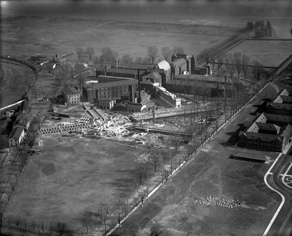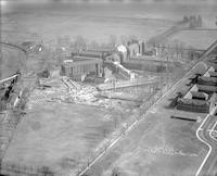 Aerial views of the Philadelphia House of Correction, opened in 1874 in the Holmesburg section of Philadelphia. Depicts the razing of the original building and construction of a new facility using the old materials.