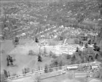 Aerial views showing the construction of a large building to the southeast of Saint Charles Borromeo Seminary's original building located at 100 East Wynnewood Road. Nearby residences are visible. St. Charles Borromeo, founded in 1832 by Rt. Rev. Francis P. Kenrick, tenanted several locations in Philadelphia before relocating to Overbrook in 1871.