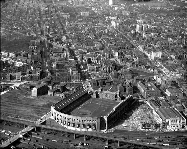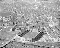 of the Quadrangle dormitories, Franklin Field, the University Museum of Archaeology and Anthropology, and the Irvine Auditorium