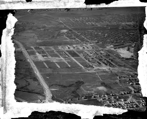 Aerial views of Crescent Boulevard (US Route 130/30) in Collingswood, New Jersey. Crescent Boulevard Bridge over the Cooper River and portions of Cooper River Park and Collingswood are visible. Initial construction on Crescent Boulevard Bridge began in 1926.