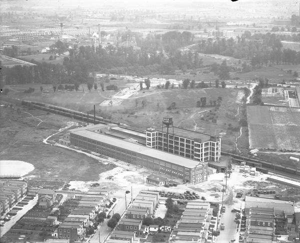 Aerial views of the Heintz Manufacturing Company steel fabricating plant in the Onley section of Philadelphia. The factory