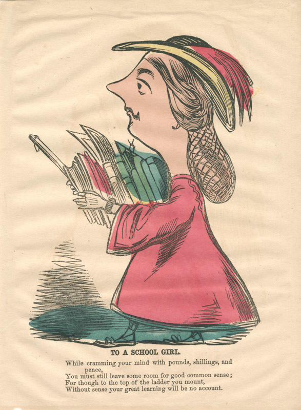 Text: While cramming your mind with pounds, shillings, and/ pence, / You must still leave some room for good common sense; / For though to the top of the ladder you mount, / Without sense your great learning will be no account.
