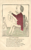 Text: Don't frighten your scholars with rap-rap-rap -- / But reserve for yourself the black dunce cap; / Seat your own self
