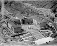 Aerial views showing the Philadelphia Museum of Art, built 1919-1928 after designs by Horace Trumbauer and the firm of Zantzinger,