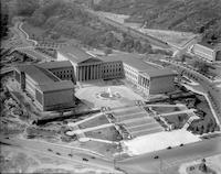 Aerial views showing the Philadelphia Museum of Art, built 1919-1928 after designs by Horace Trumbauer and the firm of Zantzinger,