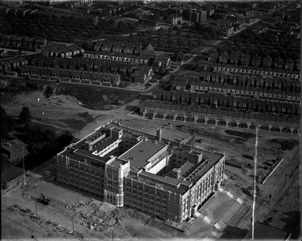 Aerial views showing Olney High School under construction. Located at North Front Street and Duncannon Avenue in the Olney