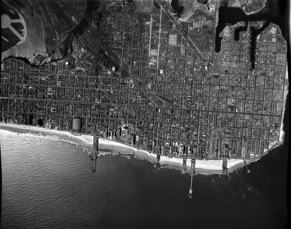 Vertical views of the New Jersey coastline in Atlantic City taken from a very high altitude. Atlantic City can be seen almost in its entirety, as can a small portion of Ventnor City. Bader Field (now the Atlantic City Municipal Airport) is also visible.