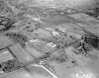 Aerial view of the campus of Beaver College, later renamed Arcadia University, in Glenside, Montgomery County, Pennsylvania. Founded in 1853 in Beaver, Pa., the school moved to Jenkintown, Pa. in 1925. In 1929 it added the Glenside campus, formerly the estate of William Welsh Harrison. Called Grey Towers, the Gothic Revival stone castle was designed by Horace Trumbauer and built 1893-1894.