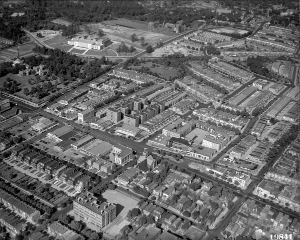Depicts school and university buildings, as well as row homes in the vicinity of Olney and Ogontz avenues. Central High School