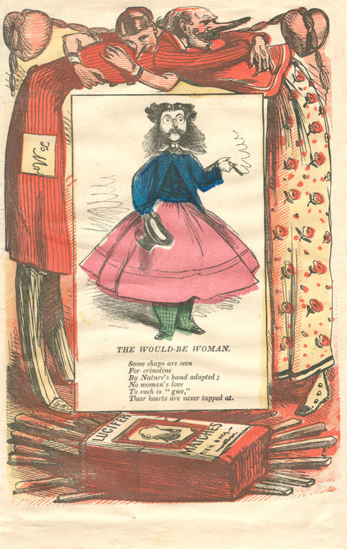 Text: Some chaps are seen / For crinoline / By Nature's hand adapted; / No woman's love / To such is "guv," / Their hearts