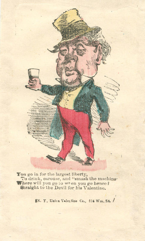 Text: You go in for the largest liberty, / To drink, carouse, and "smash the machine." / Where will you go to when you go hence? / Straight to the Devil for his Valentine.