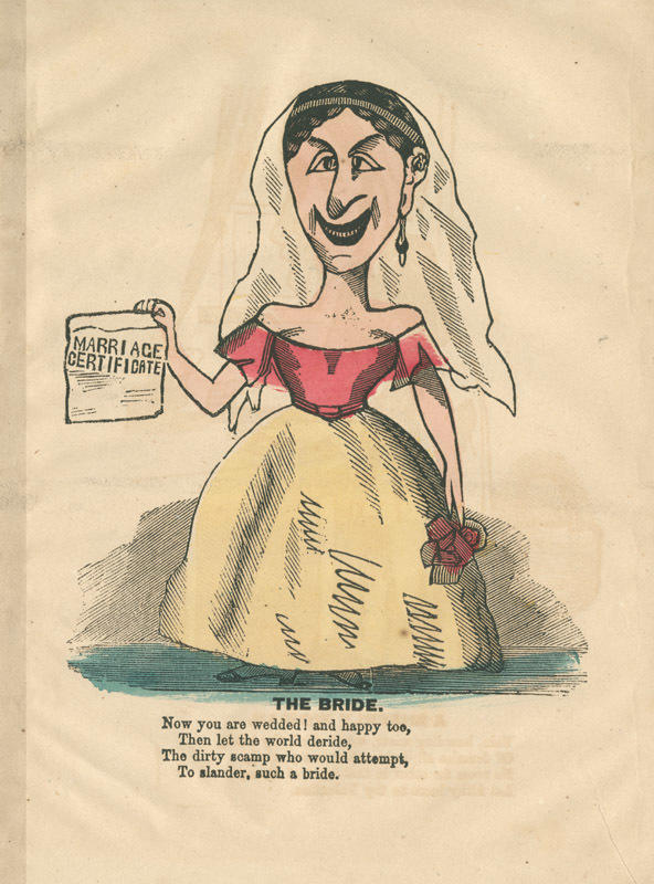 Text: Now you are wedded! and happy too, / Then let the world deride, / The dirty scamp who would attempt, / To slander, such