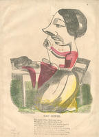 Text: You nasty thing, think any chap / Would woo the stitcher of a cap? / You walk down town, (and such a caper!) / With