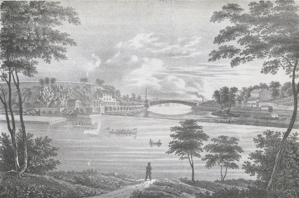 spans the river in the distance. Also shows the toll house or superintendant's house of the Schuylkill Navigation Company