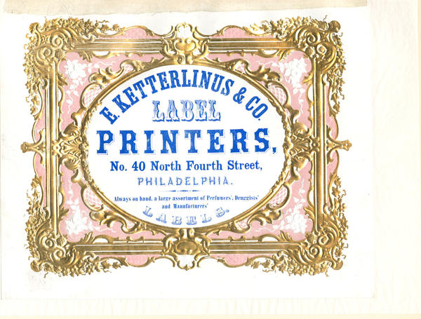 E. Ketterlinus & Co. label printers, no. 40 North Fourth St., Philadelphia. [graphic] : Always on hand, a large assortment of perfumers', druggists' and maufacturers' label.