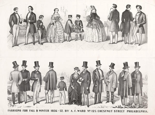 Fashions for fall & winter 1856-7 by A. F. Ward no. 125 Chestnut Street Philadelphia [graphic] / J. Magee del.; A. Bigemann [sic] colorist.