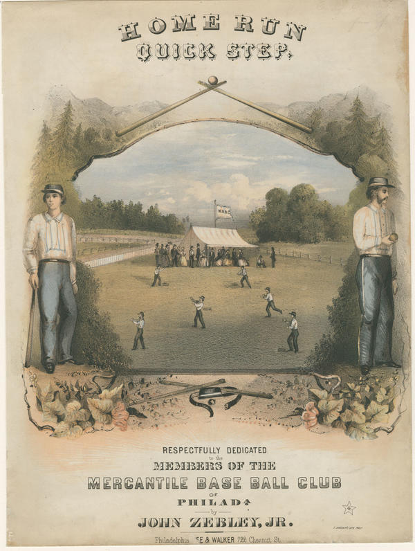 Home run quick step [graphic] : Respectfully dedicated to the members of the Mercantile Base Ball Club of Philada. by John Zebley, Jr. / T. Sinclair's lith. Phila.