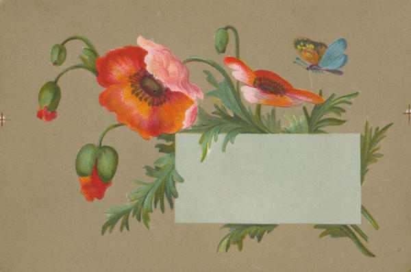 Two specimen trade cards containing floral designs and blanks issued by the Philadephia branch of the New York partnership that operated 1863-1888. One designs also includes a butterfly. Cards contain registration marks.
