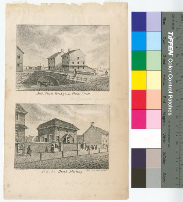 Arch Street Bridge at Front Street ; Friends' Bank Meeting [graphic] / W.L. Breton, delr.