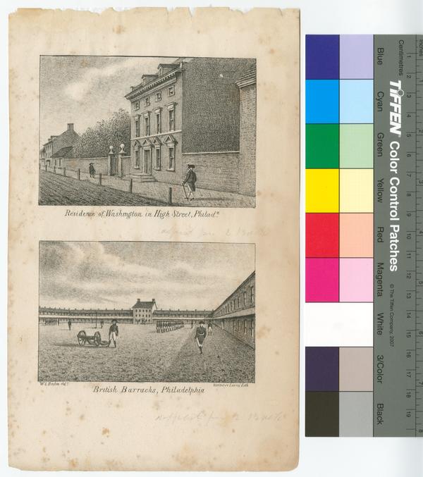 Residence of Washington in High Street, Philada.; British Barracks, Philadelphia. [graphic] / W.L. Breton delt.