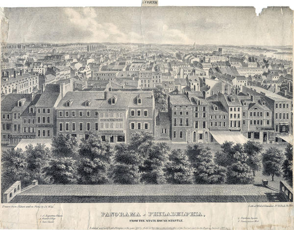 Plate 2 of four panoramas originally issued as Panorama of Philadelphia. Views taken from the State House steeple (Philadelphia: