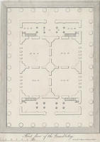 First floor plan of Founder's Hall, Girard College located between Girard and Ridge Avenues at Corinthian Avenue in Philadelphia. Designed by Philadelphia architect Thomas Ustick Walter in the Greek Revival style, the hall was constructed 1833-1847. Girard College was established through a bequest from Stephen Girard, a Philadelphia financier and philanthropist, for a school for poor white male orphans.