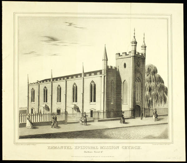 Emmanuel Episcopal Mission Church. Marlboro Street Kn. Published to assist in liquidating the debt upon the church, by the wardens. [graphic] / Drawn from nature and lithd. by T. S. Wagner.