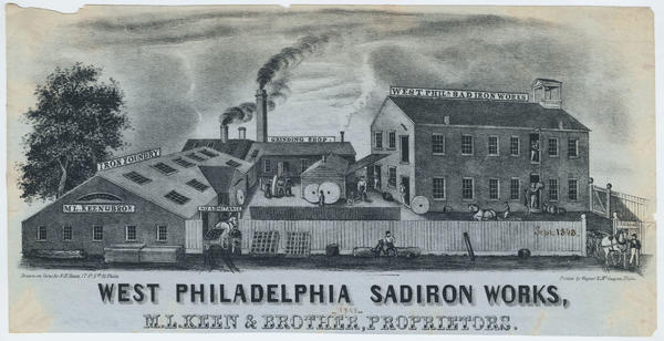 West Philadelphia Sadiron Works, M.L. Keen & Brother, Proprietors. [graphic] / Drawn on stone by W.H. Rease, 17 So. 5th St. Phila.