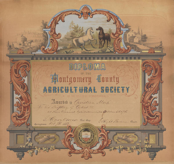 Diploma of the Montgomery County Agricultural Society of the state of Pennsylvania [certificate] [graphic] / W. Dreser, del. & lith.