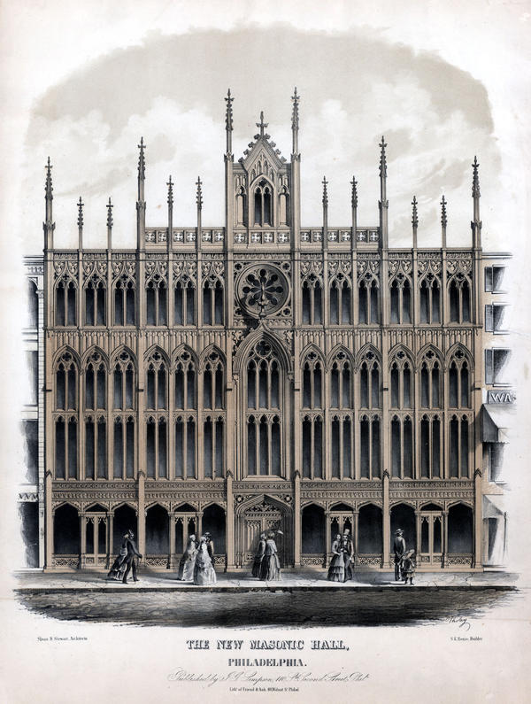 The New Masonic Hall, Philadelphia. [graphic] / Tholey ; Lithy. of Friend & Aub, 80 Walnut St. Philad; Sloan & Stewart, Architects; S.K. Hoxie, Builder.