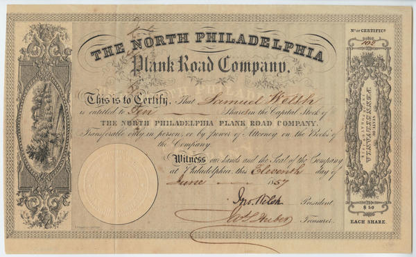 The North Philadelphia Plank Road Company [stock certificate] [graphic].