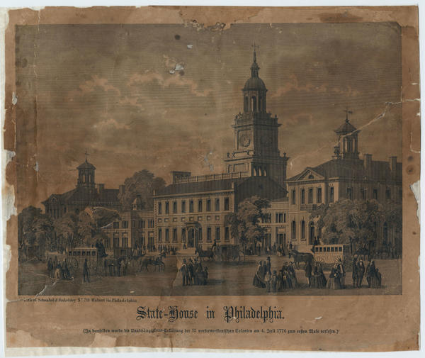 State-house in Philadelphia. (In bemfelben bie Unabbangigfeits=Erflarung ver 13 norbameritanifchen colonien am 4. Juli 1776