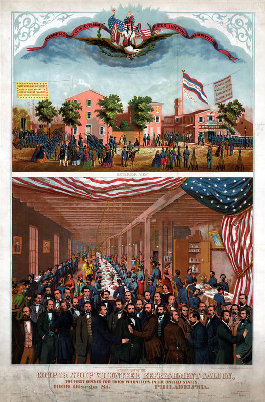 Cooper Shop Volunteer Refreshment Saloon, the first opened for Union Volunteers in the United States. 1009 Otsego St. Philadelphia.