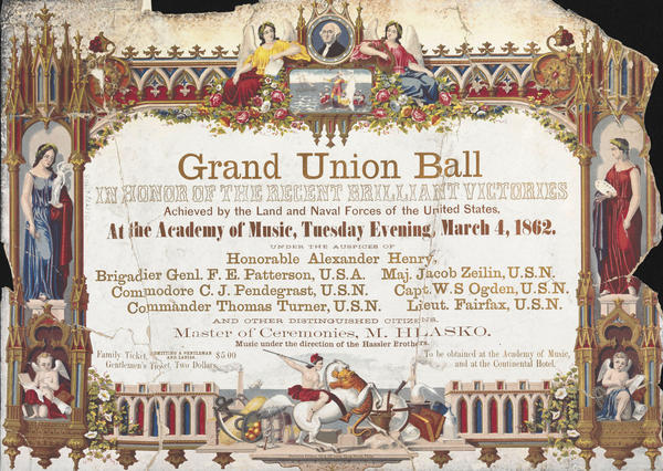 Grand Union ball in honor of the recent brilliant victories achieved by the land and naval forces of the United States, at the Academy of Music, Tuesday evening, March 4, 1862. [graphic] / L. Weeber del.