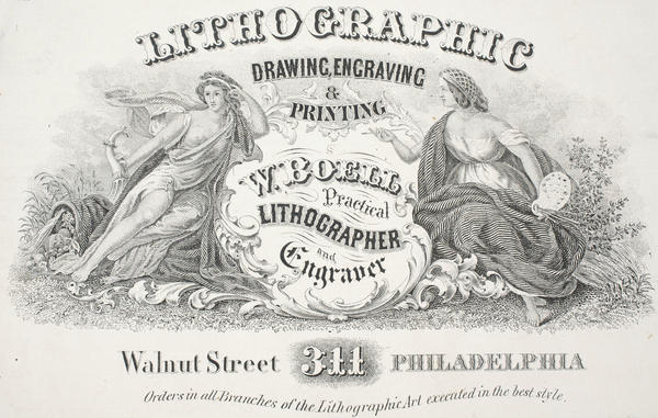 W. Boell, practical lithographer and engraver, 311 Walnut Street Philadelphia. [graphic] : Lithographic drawing, engraving & printing. Orders in all branches of the lithographic art executed in the best style