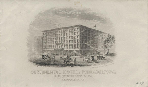 Continental Hotel, Philadelphia, J.E. Kingsley & Co., proprietors [envelope] [graphic].