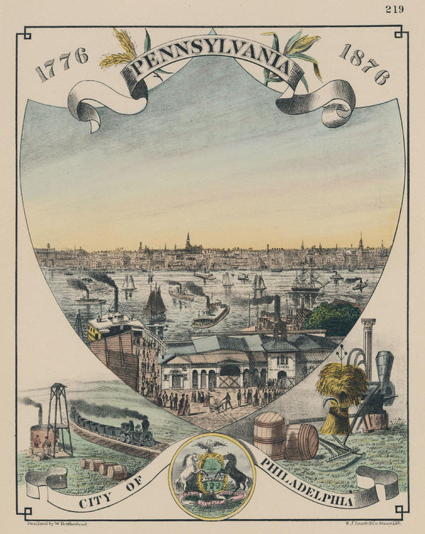 Pennsylvania, 1776-1876, City of Philadelphia. [graphic] / Designed by W. Brotherhead.
