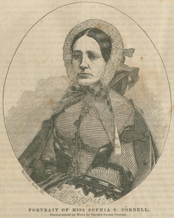 Portrait of Miss Sophia S. Cornell / Waters & Co., sc. ; photographed on wood by Price’s patent process.