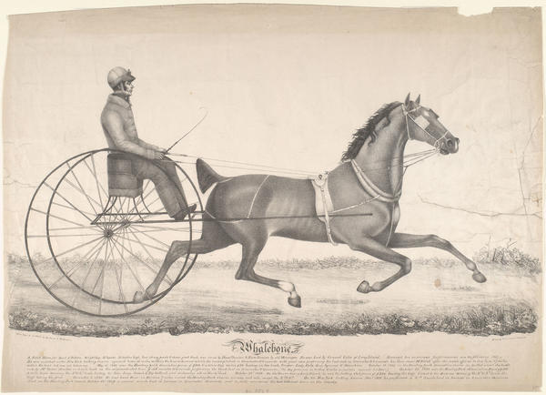 Whalebone. [graphic] : A noted horse for speed & bottom, Brightbay, 15 hands 3 1/2 inches high, has strong points & shews great blodd, was sired by Hamiltonian & Hamiltonian by old Messenger. He was bred by General Coles of Long Island. From life and on stone by Richard S. Hillman.