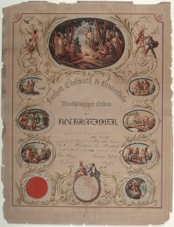 Freiheit Edelmuth & Bruderliebe, Unabhangiger Orden der Rothmaenner [membership certificate] [graphic] / A. Feusier, lith.