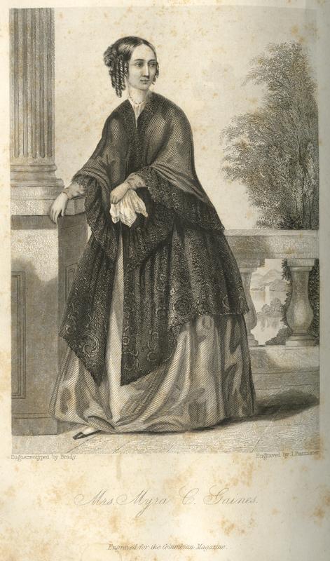 Mrs. Myra Clark Gaines / daguerreotyped by Brady ; engraved by J. Bannister ; engraved for the Columbian Magazine.
