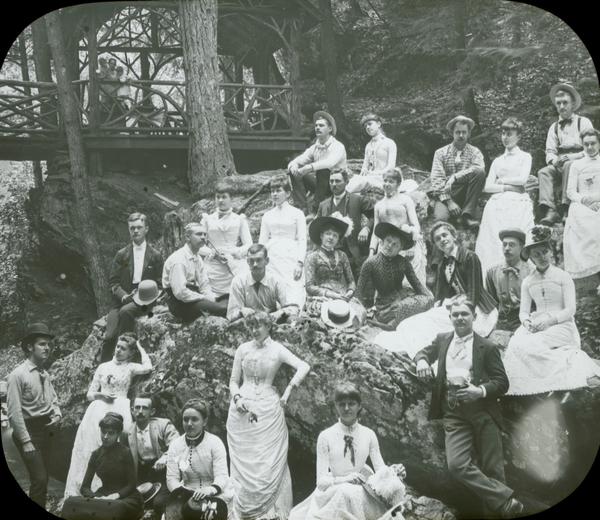[Group portraits near a rustic pavilion, near Devil's Pool in Cresheim Creek, Fairmount Park, Philadelphia.] [graphic]. |
