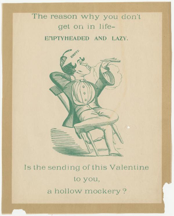 Text: The reason why you don't get on in life-- / Is the Sending of the Valentine to you a hollow mockery?