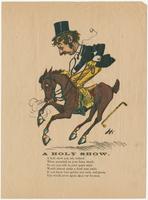 Text: A holy show you are, indeed, / When mounted on your bony steed; / To see you ride in your queer style / Would almost make a dead man smile. / If you know how gawky you look, and green, / You would never again on a nag be seen.